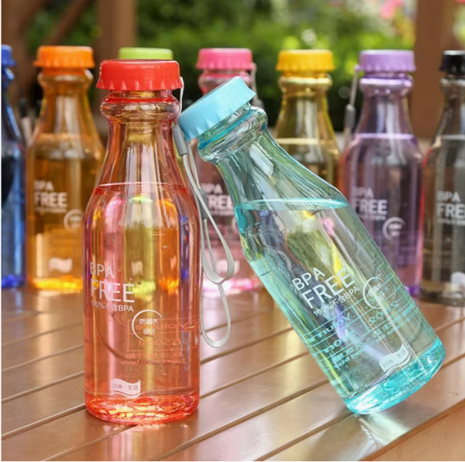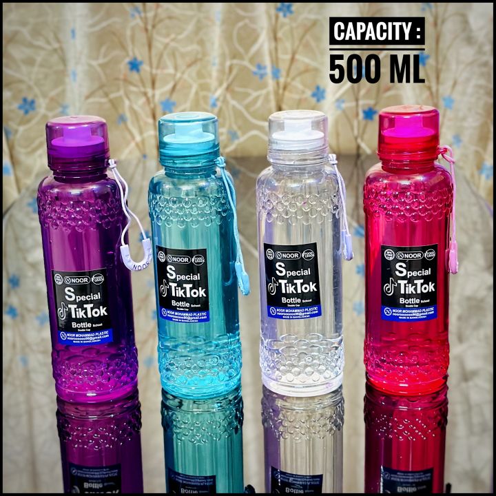 বৈশিষ্ট্য: এটি স্বচ্ছ এবং লম্বাকৃতির। এর ভেতরে একটি স্ট্র (Straw) দেখা যাচ্ছে, যা দিয়ে পানি পান করা সহজ।
