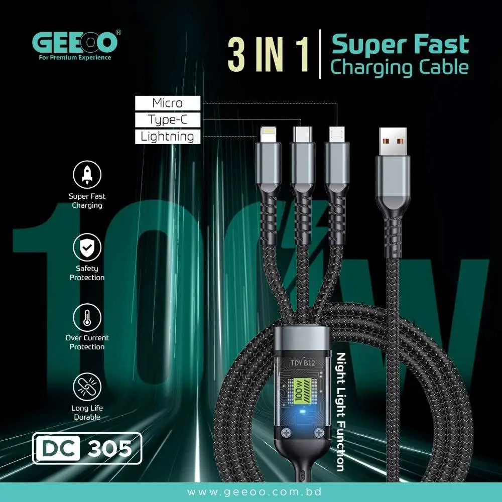 • Transparent Luminous Fast Charge: Enjoy the eye-catching glow while benefiting from ultra-fast charging. Our transparent luminous 3-in-1 super fast charging cable supports up to 100W USB-C output, 27W Lightning, and 10W Micro, delivering quick and reliable power to your gadgets.
